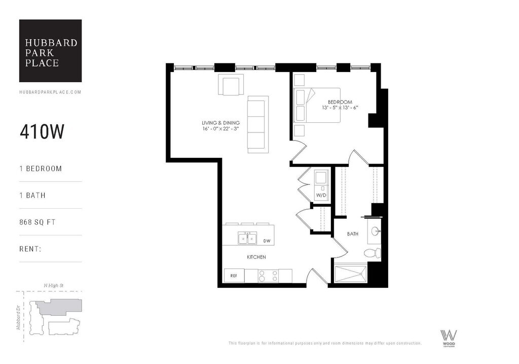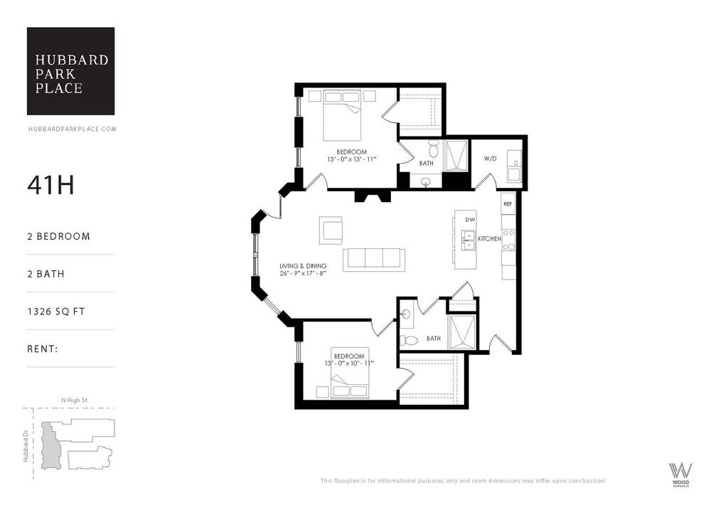 Hubbard Park Place - 201H - Floorplan 1 Apartment Unit: 201HApartment Model: Hubbard Park Place - 201H$1,7451 Bedroom, 1 Bath, 718 sq ftAvailable Now![]()