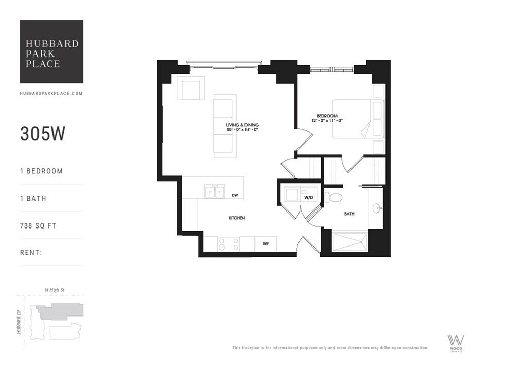 Hubbard Park Place - 312H - Floorplan 1 Apartment Unit: 312HApartment Model: Hubbard Park Place - 312H$1,6951 Bedroom, 1 Bath, 685 sq ftAvailable Now![]()