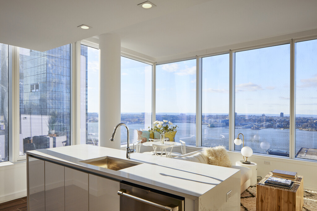 Discover height, discover light and discover room to breathe at Hudson 36. With luxury residences offering generous ceiling heights and expansive city and river views spanning 360 degrees, this is the premier upscale apartment building in the Hudson Yards district. Explore a bold new neighborhood. Enjoy park-front living with the new Hudson River Park and Boulevard at your doorstep. Live in ultimate comfort and style with beautifully designed amenity spaces to complement meticulously crafted residences. Rising 45 stories, Hudson 36 offers a fresh perspective for a better way to live a fast-paced Manhattan life. With attended parking, 24-hour doorman and a wealth of communal and recreational space, all that you could want will be at your fingertips. Floor-to-ceiling windows frame each residence with ceiling heights reaching up to 10 feet. Elegant kitchens feature Italian white cabinetry, Caesarstone countertops and state-of-the-art appliances and fixtures, all with a washer-dryer in every residence. The homes at Hudson 36 have been designed to optimize light and space. Each one has generous windows showcasing incredible city and river views. Each apartment feels calm, spacious and light, offering the ideal respite from busy city living. The building’s amenities also showcase river and city views – the BBQ roof deck looks out across the river while the gym and residents’ lounge has beautiful views of the Manhattan skyline with soaring ceiling heights of 20 feet. Hudson 36 has been designed to incorporate an abundance of warm, rich, natural materials. ‘Earth meets modern’ is a theme reflected throughout common areas as well as woven through the design of each apartment. All apartments have birch wood floors, while stone is used throughout the building and as a feature in kitchens and bathrooms. Glass complements porcelain to create the building facade. BUILDING FEATURES • ADJACENT TO HUDSON PARK • 24-HOUR DOORMAN • SPA WITH HOT TUB • FULLY EQUIPPED FITNESS CENTER • ENTERTAINMENT LOUNGE • SCREENING ROOM • BBQ ROOFDECK • CHILDREN’S PLAYROOM • ON-SITE SUPERINTENDENT • ATTENDED PARKING GARAGE • BICYCLE STORAGE RESIDENCE FEATURES • FLOOR-TO-CEILING WINDOWS • PRIMARILY 10’ CEILINGS • HARDWOOD FLOORS • WASHER & DRYER IN UNIT • GE CAFÉ SERIES STAINLESS STEEL APPLIANCES • ITALIAN WHITE CABINETRY WITH CAESARSTONE COUNTERTOPS • UNDER-CABINET LED LIGHTS IN KITCHENS • KOHLER FIXTURES • KEY-LESS ENTRY