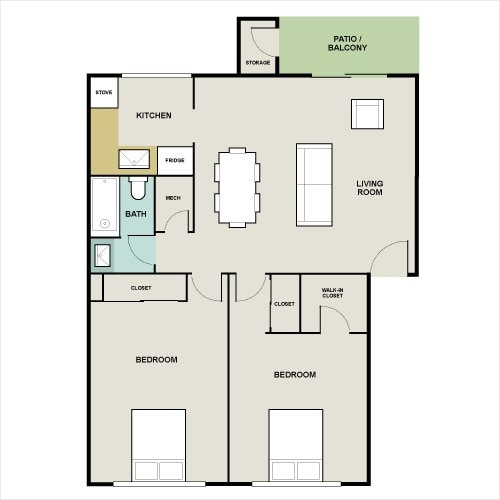 2 Beds, 1.5 Baths, 1100 sq ftLargest 2 BedroomThis is the largest 2 Bedroom at this PropertyModel Gallery