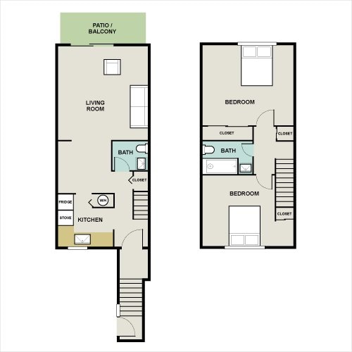2 Beds, 1 Bath, 900 sq ftModel Gallery