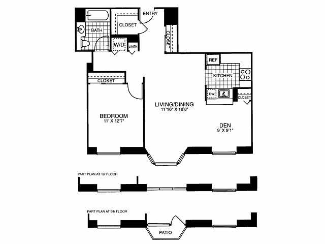 One Bedroom/One Bath + Den - Floorplan 1 2 Bedrooms