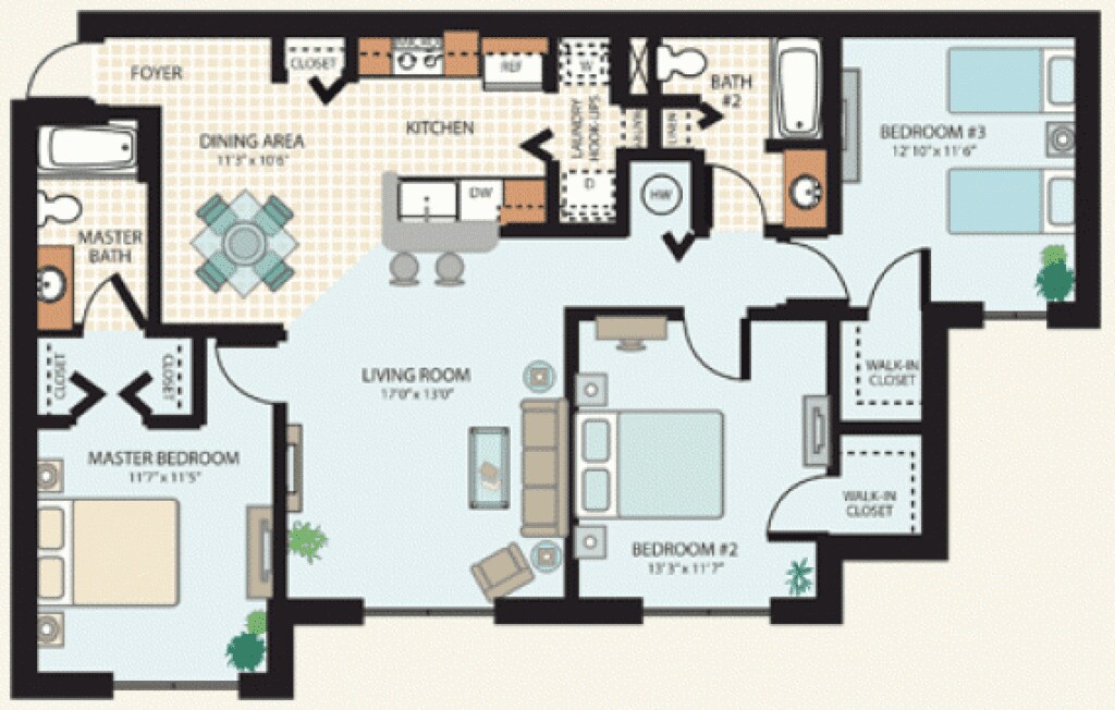 THE PALM - Floorplan 1 Apartment Unit: 3-305Apartment Model: THE PALM2 Bedroom, 2 Bath, 974 sq ftAvailable Soon3 Bedrooms