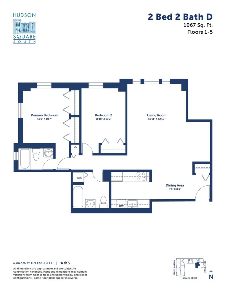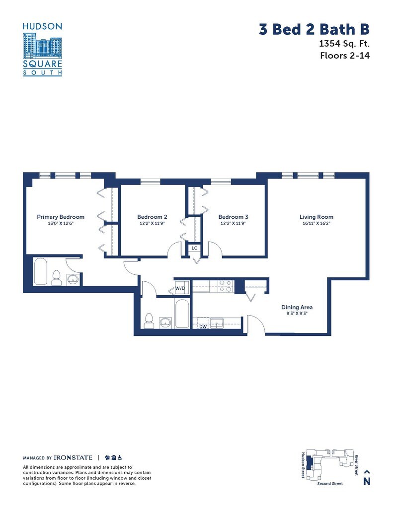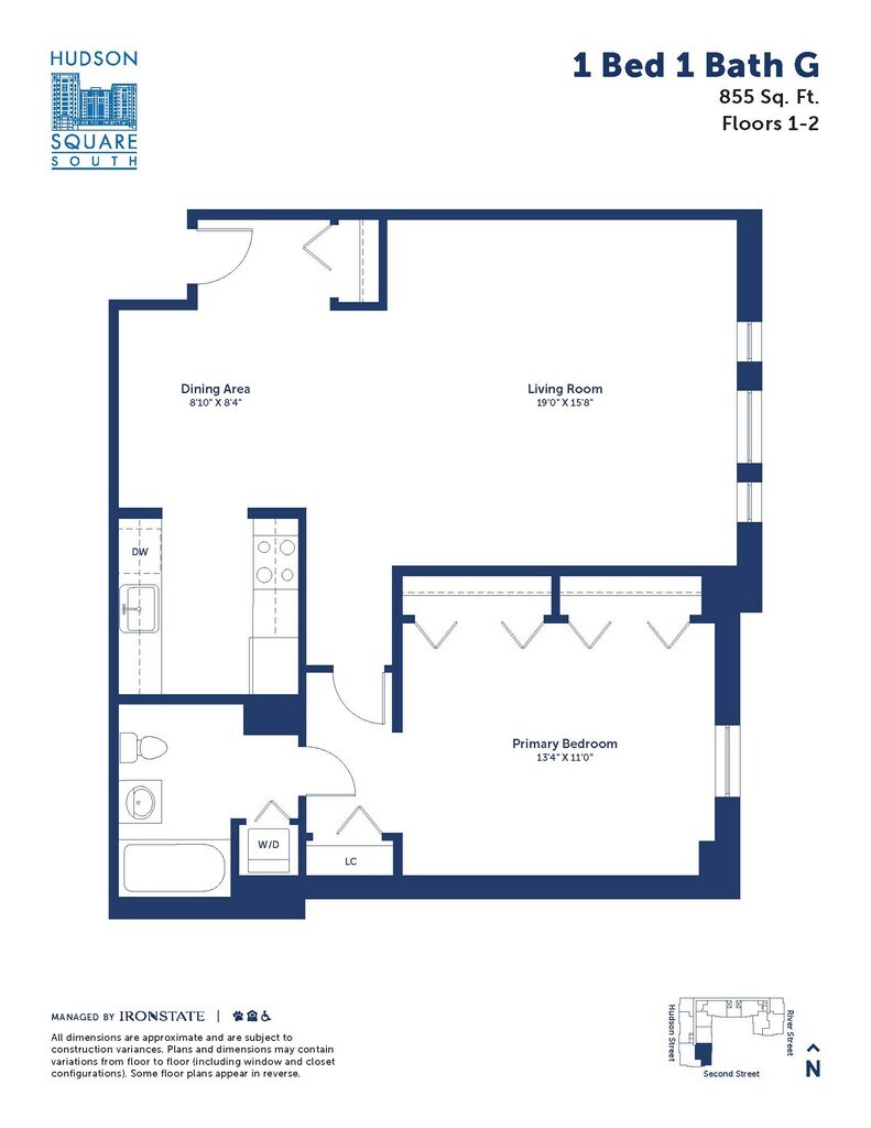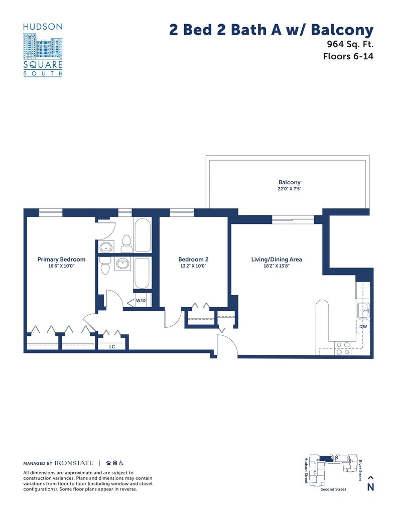 Hudson Square South offers a classic design with a modern viewpoint in the center of vibrant downtown Hoboken. The building boasts a Marble Lobby, Bike Storage, a Landscaped Courtyard and Washer/Dryers in each unit, with select luxury residences offering private balconies or terraces. Hudson Square South is steps from Hobokens exciting shopping and nightlife district.