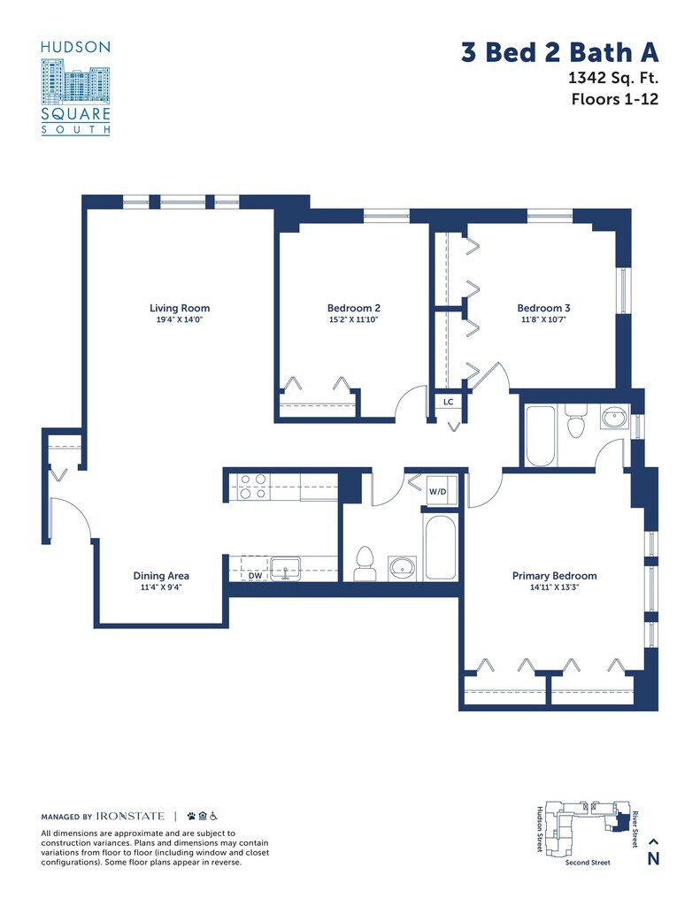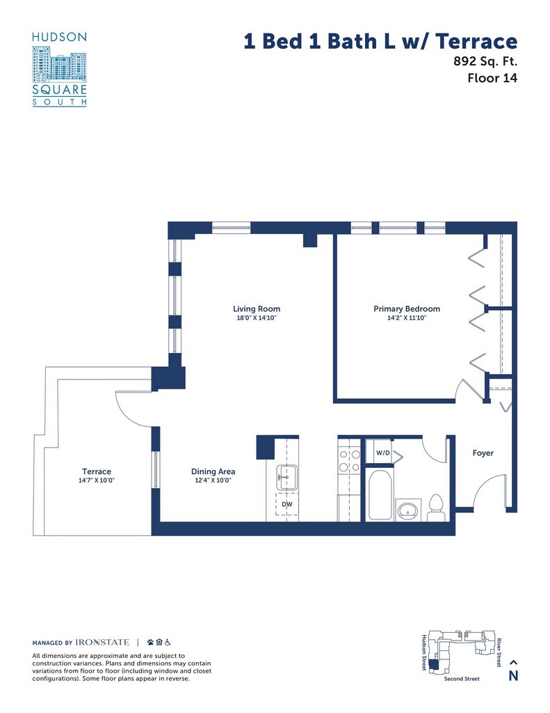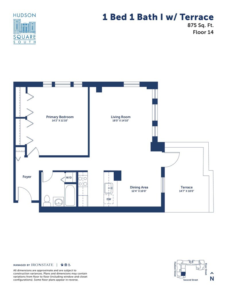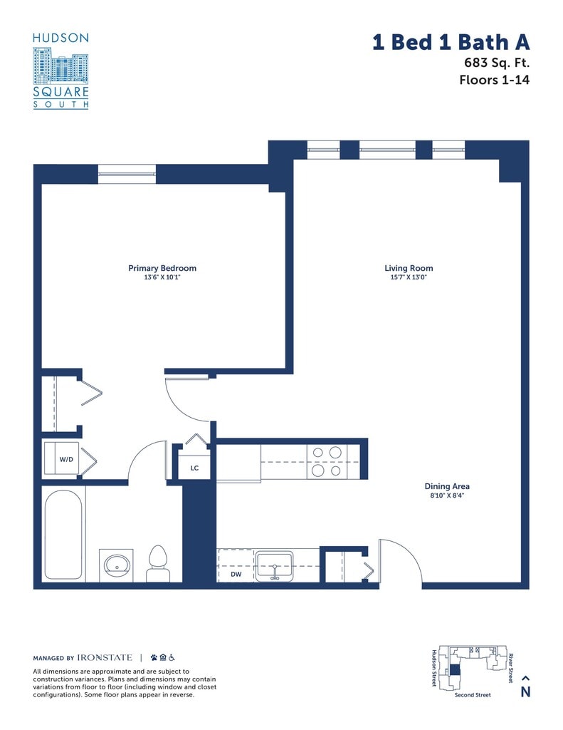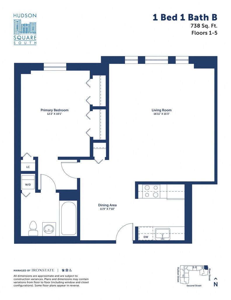 Hudson Square South offers a classic design with a modern viewpoint in the center of vibrant downtown Hoboken. The building boasts a Marble Lobby, Bike Storage, a Landscaped Courtyard and Washer/Dryers in each unit, with select luxury residences offering private balconies or terraces. Hudson Square South is steps from Hobokens exciting shopping and nightlife district.