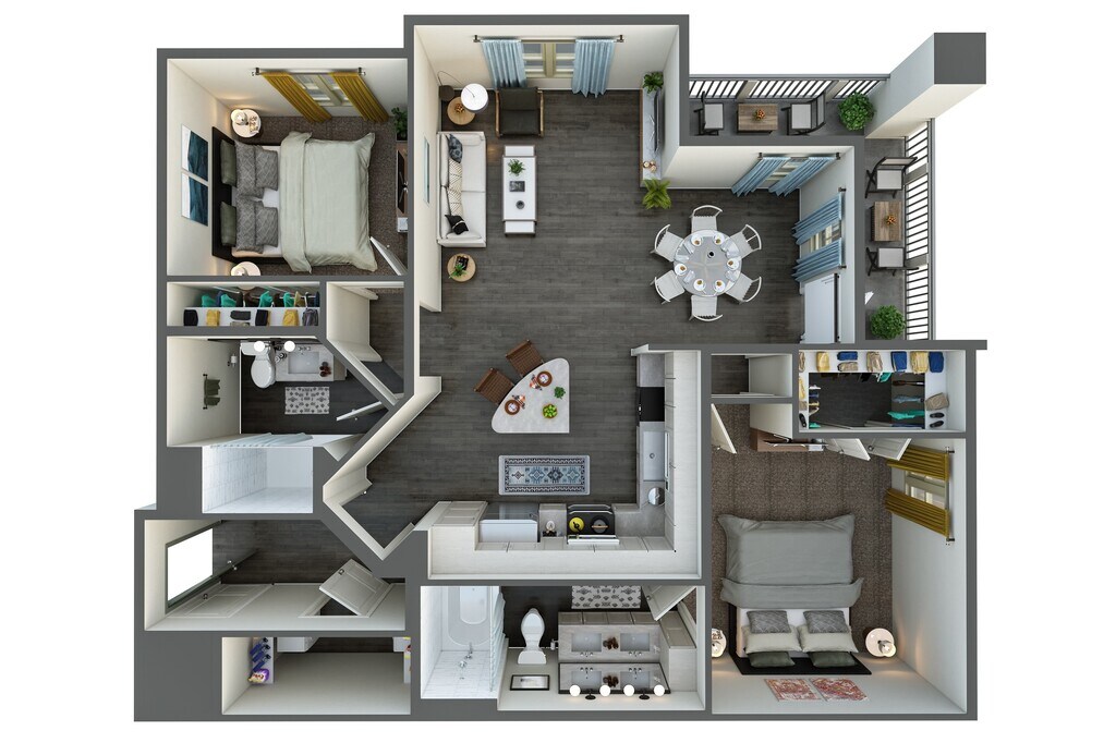 2 Beds, 2 Baths, 1055 sq ftAvailable NowModel Gallery