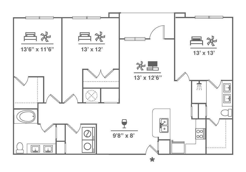 Hue on Greenhouse offers 1 to 3 Bedroom apartments starting from $1,382 and having 684–1,535 sq ft. Here is the current pricing and availability: