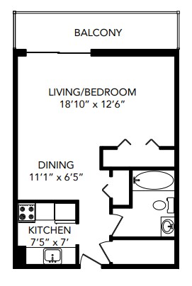 Studio, 1 Bath, 554 sq ftAvailable NowAvailability Details