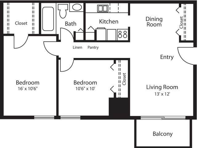 2 Beds, 1 Bath, 798 sq ftAvailable NowModel Gallery