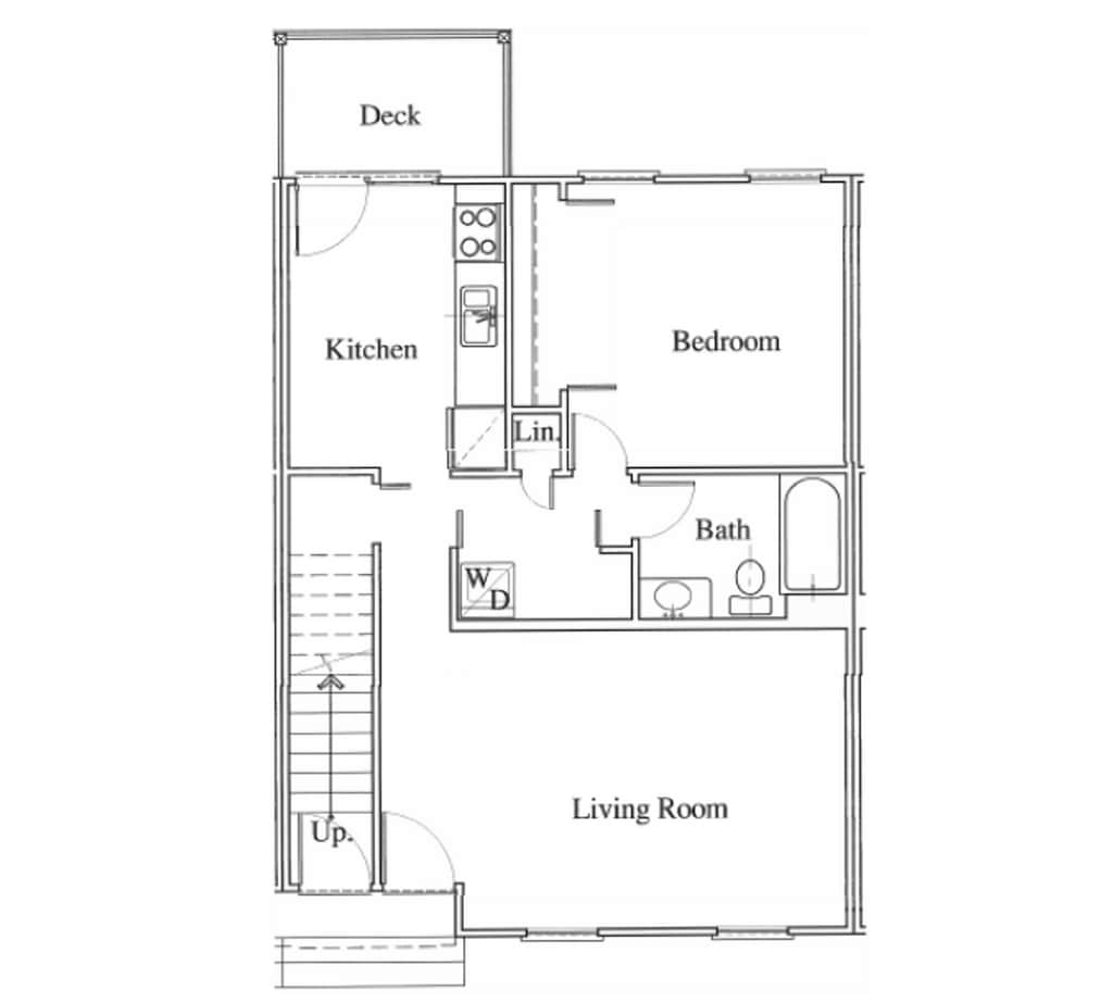 Second floor (walk-up) 1-bedroom apartment home with corner exposure, stainless steel appliances, and deck space.