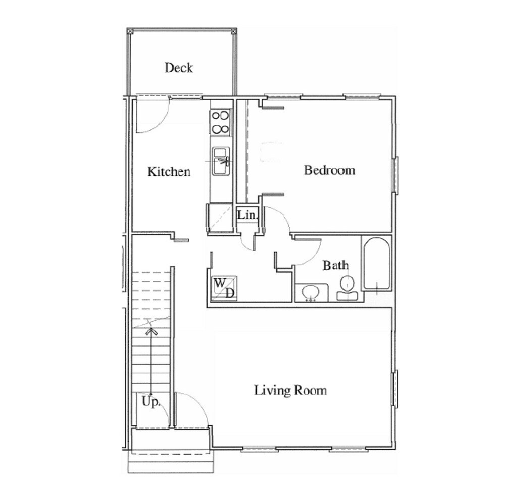 Ground level corner 1-bedroom apartment with hardwood floors, stainless steel appliances, and deck space.