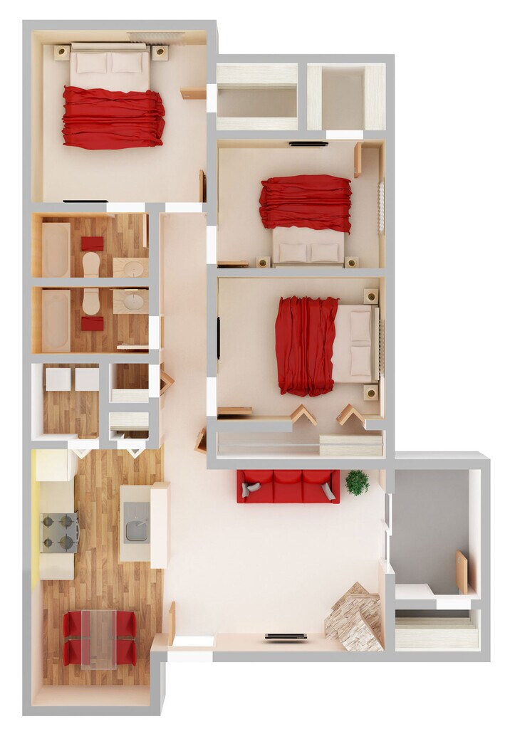 Cambridge - Floorplan 1 Apartment Unit: 818Apartment Model: Cambridge$1,5032 Bedroom, 2 Bath, 977 sq ftAvailable December 9, 20253 Bedrooms