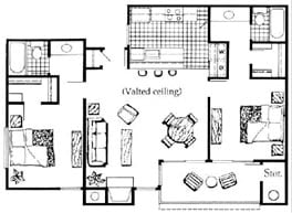 At Huntcliffe Apartments, we dont sacrifice comfort in the name of affordability. Our unique floor plans include one and two bedroom apartments for rent in Fair Oaks, California, and offer a spacious living environment in a convenient location. Live well at Huntcliffe Apartments. Every one of our two bedroom apartments offers dual master suites, each with a private bathroom. Other perks to our loft-style floor plans include a fully equipped kitchen, private patio or balcony, and vaulted ceiling. Get comfortable at Huntcliffe.