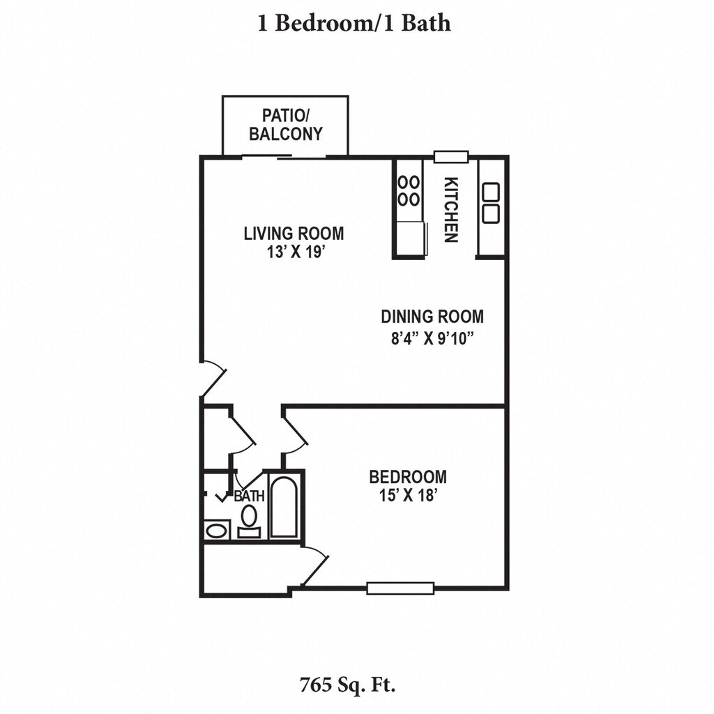 Apartment Model: 1 Bedroom, 1 Bath1 Bedroom, 1 Bath, 765 sq ftAvailable March 13, 2026![]()