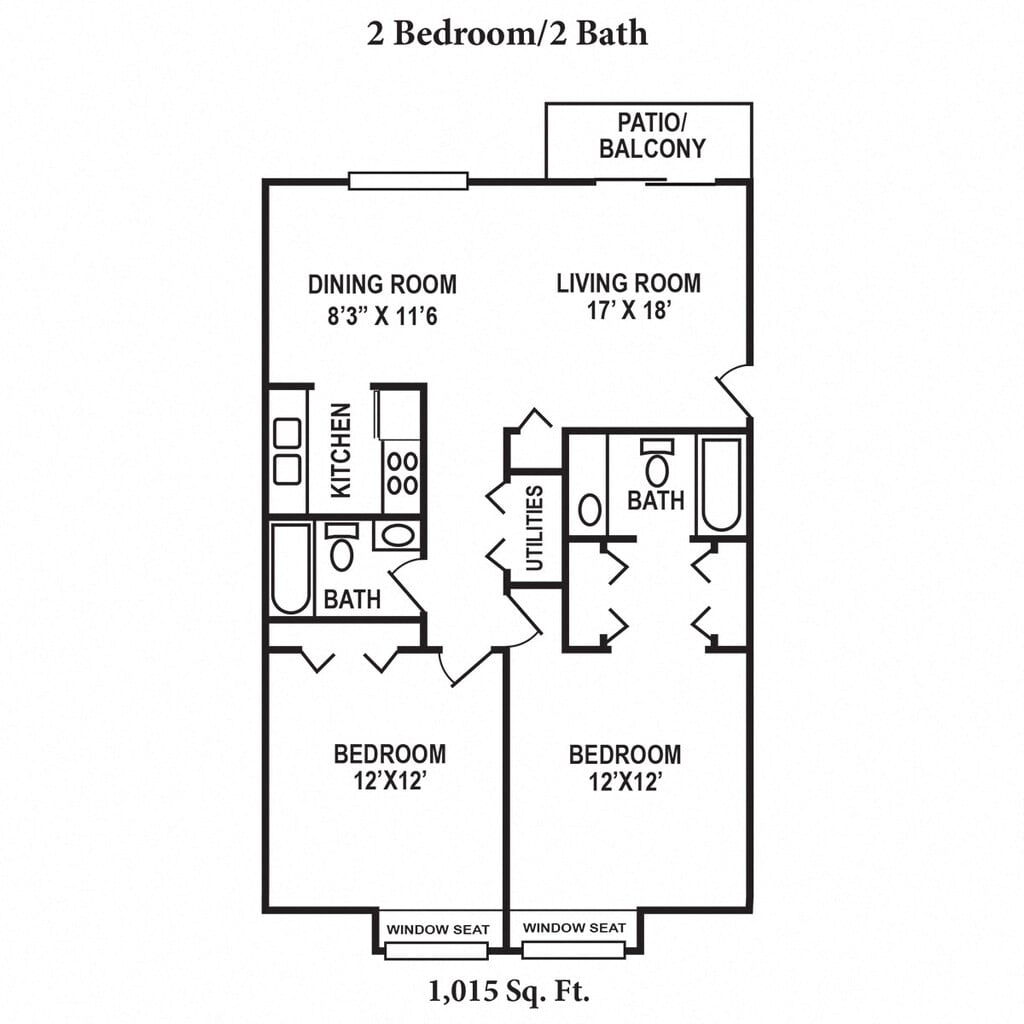 Availability Date Unit Sq Ft Unavailable 2 Bedroom, 2 Bath 1015 sq ft Apartment Model: 2 Bedroom, 2 Bath2 Bedroom, 2 Bath, 1015 sq ftUnavailable![]()