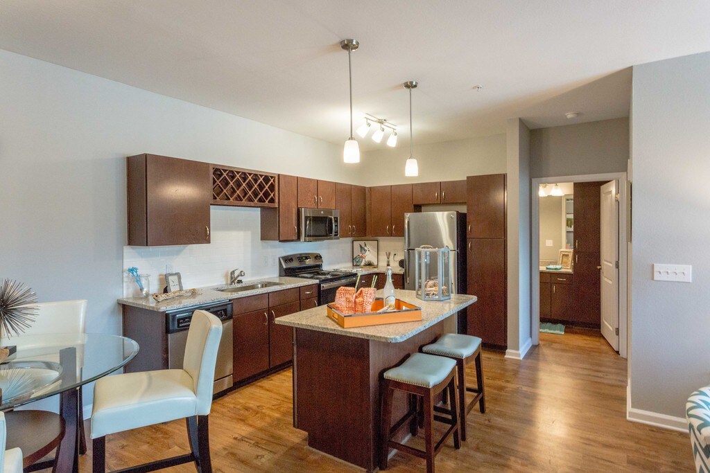 August 9, 2015Brand new, luxury living! We are in an "upgraded" building so we have a huge garden tub with darker laminate hardwood floors. This community is so quiet even with it being less than 5 minutes away from the mall. I absolutely love it here!Review from Apartments.com