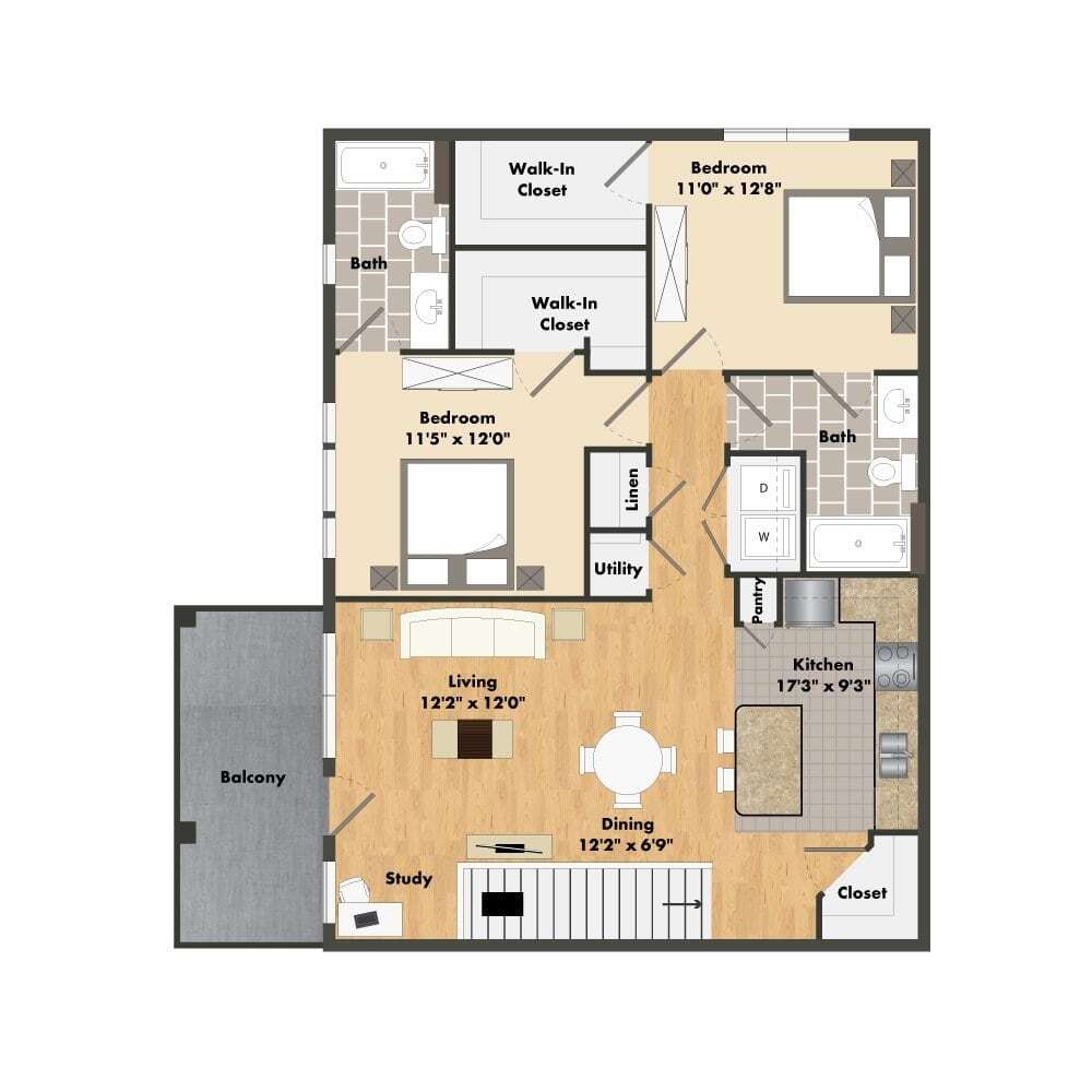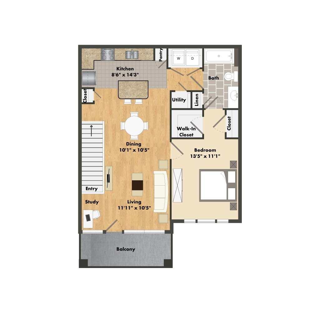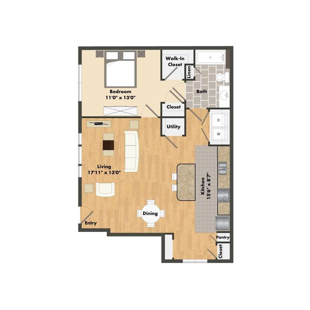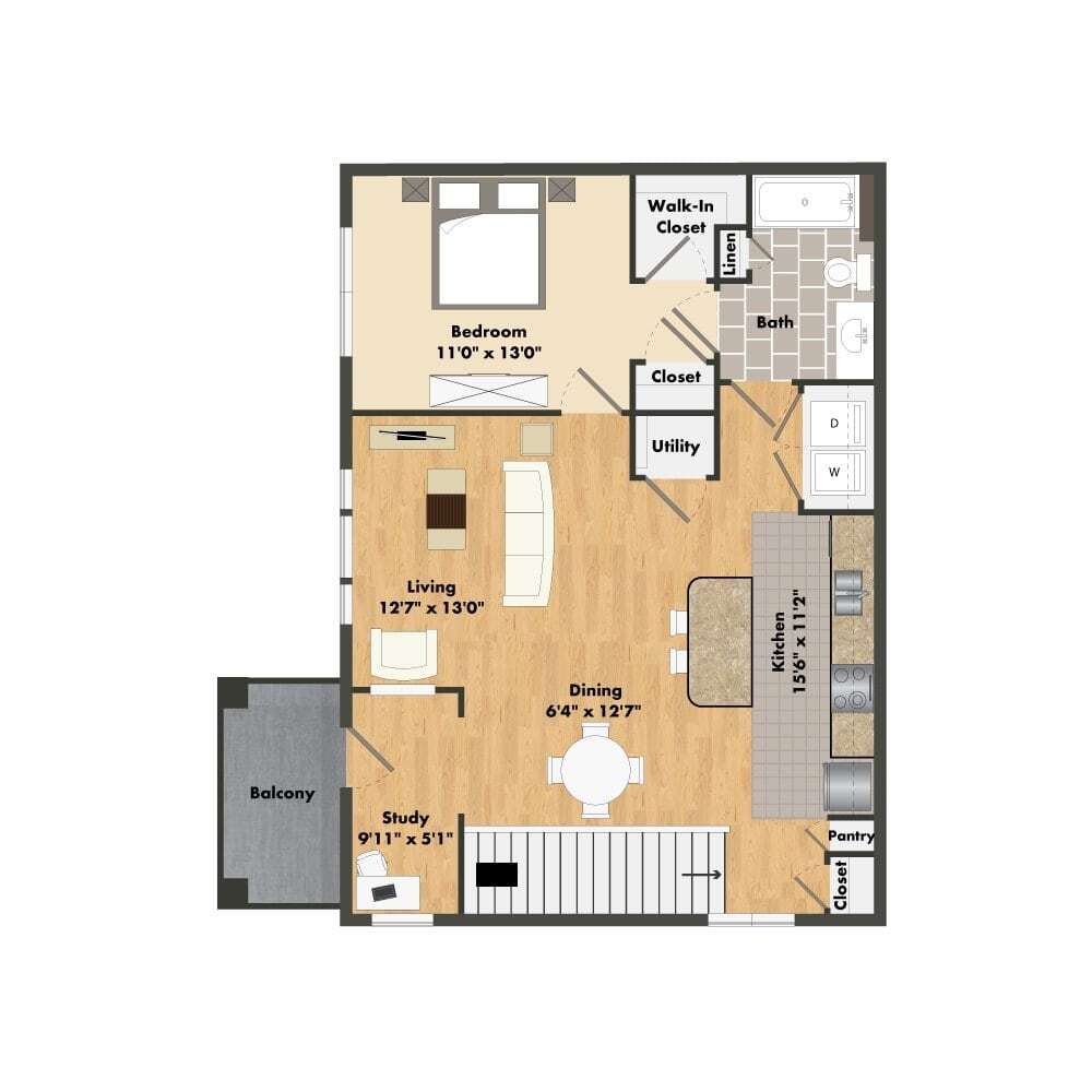 Studio, 1 Bath, 623 sq ftAvailable NowModel Gallery