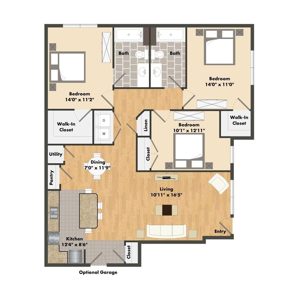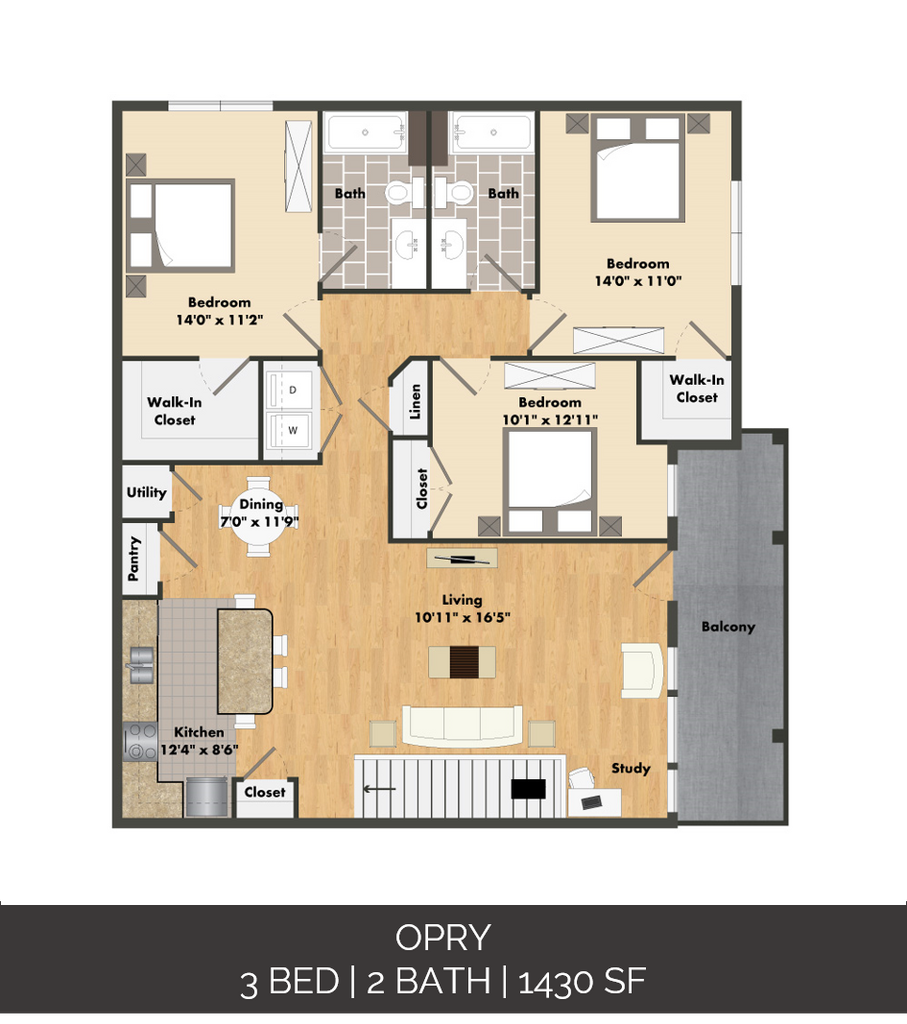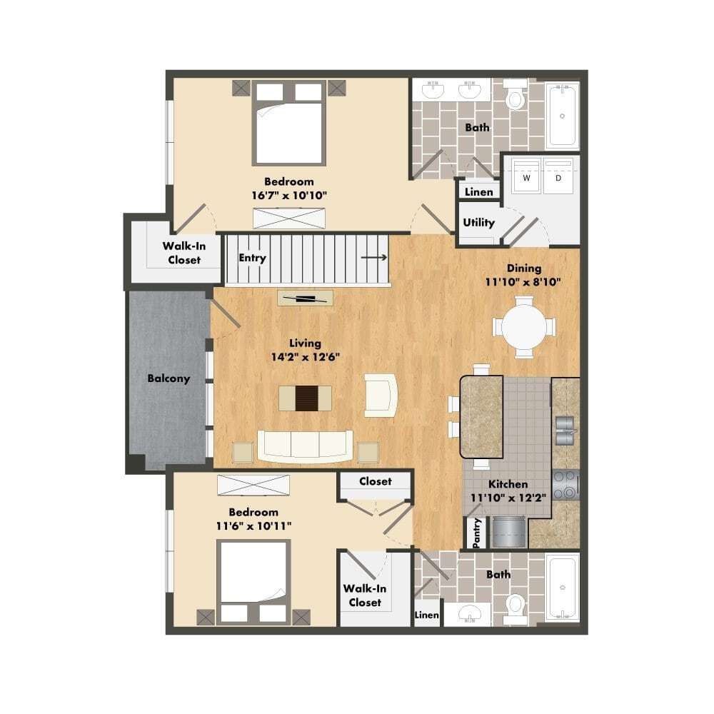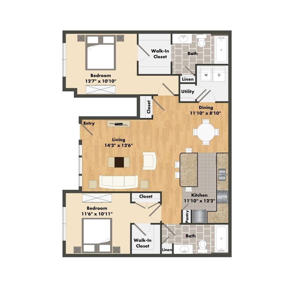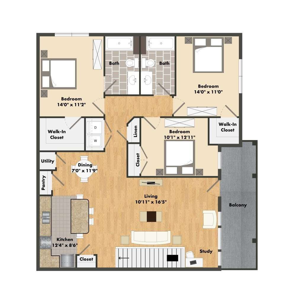 Studio, 1 Bath, 623 sq ftAvailable NowModel Gallery