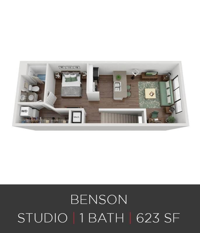 Apartment Model: Benson$1,125Studio, 1 Bath, 623 sq ftAvailable Now![]()