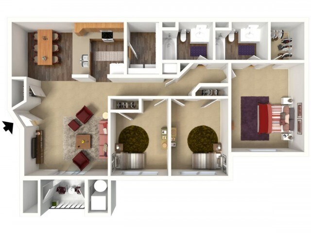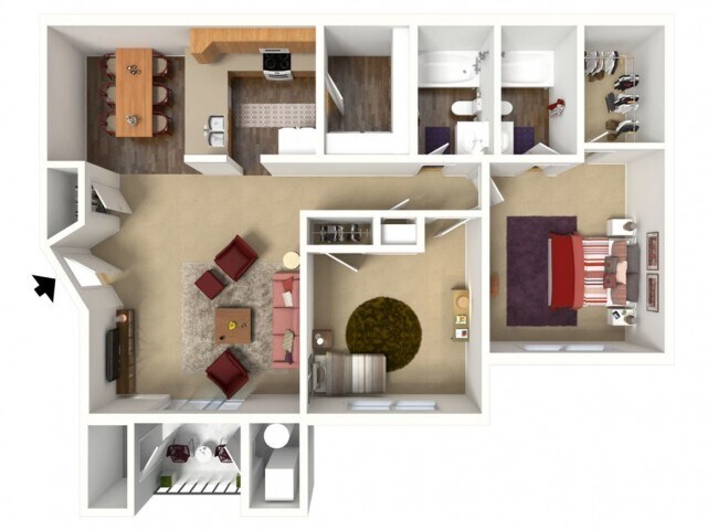 Apartment Model: SwanFrom $1,2531 Bedroom, 1 Bath, 932 sq ftAvailable Now![]()