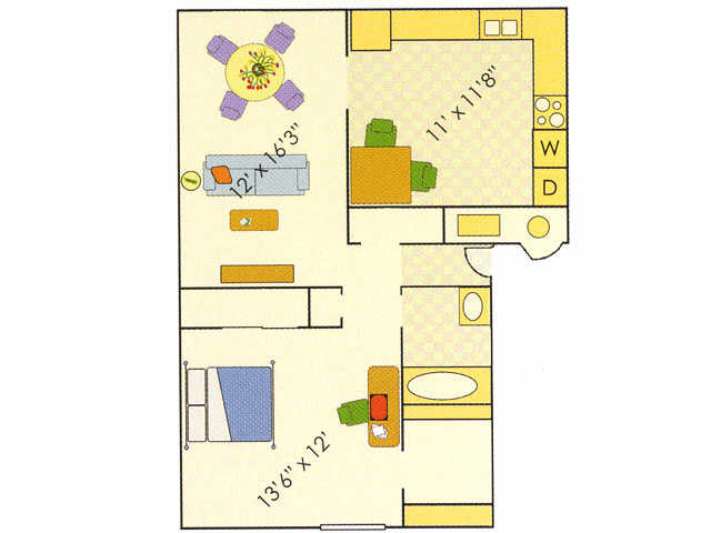 Apartment Model: 1 BR GardenFrom $9501 Bedroom, 1 Bath, 734 sq ftAvailable Now1 BR Garden - Floorplan 1 2 Bedrooms