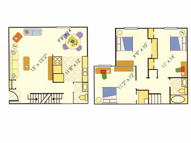 Apartment Model: 2 BR Townhome$1,0152 Bedroom, 1.5 Bath, 1056 sq ftUnavailable2 BR Townhome - Floorplan 1 2 BR Townhome w/ Basement