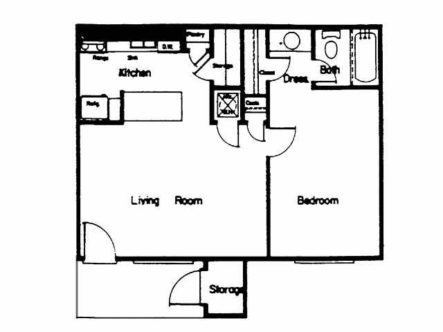 Apartment Model: 1 Bdrm - 1 Bath$7651 Bedroom, 1 Bath, 640 sq ftAvailable Now![]()