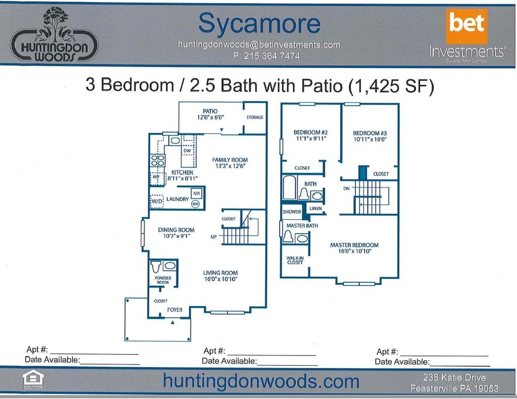 Welcome Home to Huntingdon Woods, a community of townhome apartments for rent in Feasterville, picturesque and tucked away among a wooded landscape in Bucks County’s Lower Southampton Township. This quaint community appeals to those who appreciate the finer things and attention to detail available in a rental townhome, while enjoying easy access to every day conveniences.