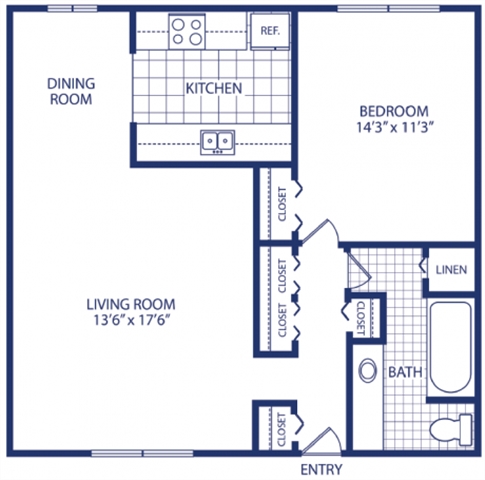 Apartment Model: One Bedroom (A, B, C)From $9591 Bedroom, 1 Bath, 750 sq ftAvailable NowFloorplansPhotos![]()