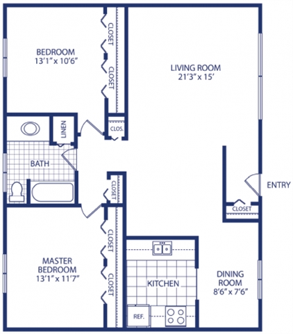 Apartment Model: Two BedroomFrom $1,1852 Bedroom, 1 Bath, 1025 sq ftAvailable NowFloorplansPhotos![]()