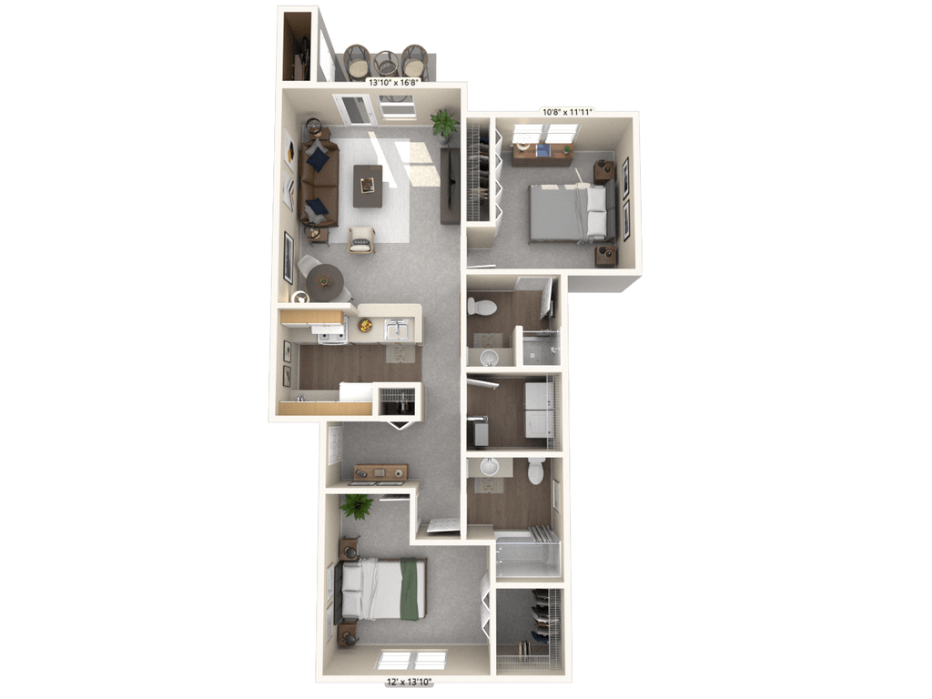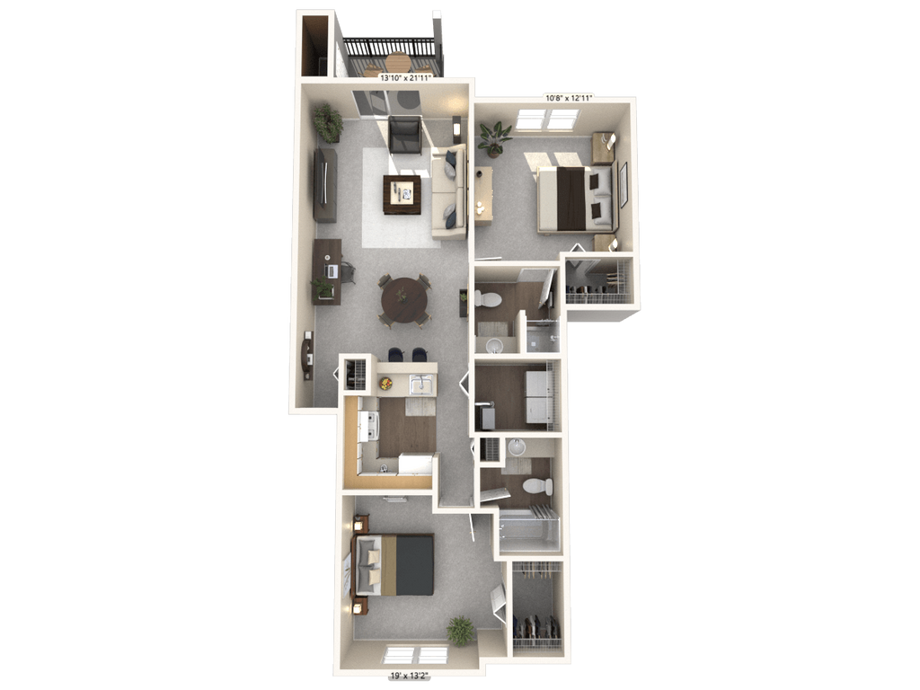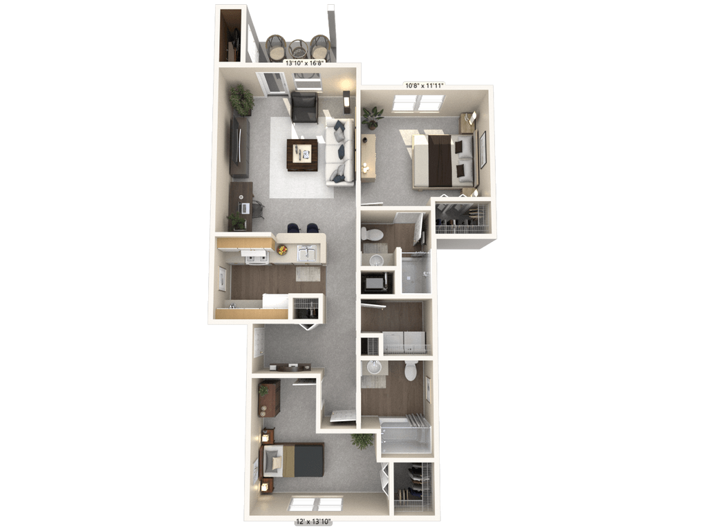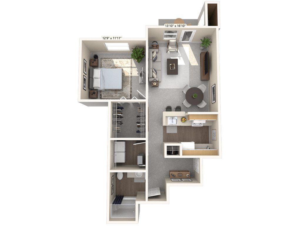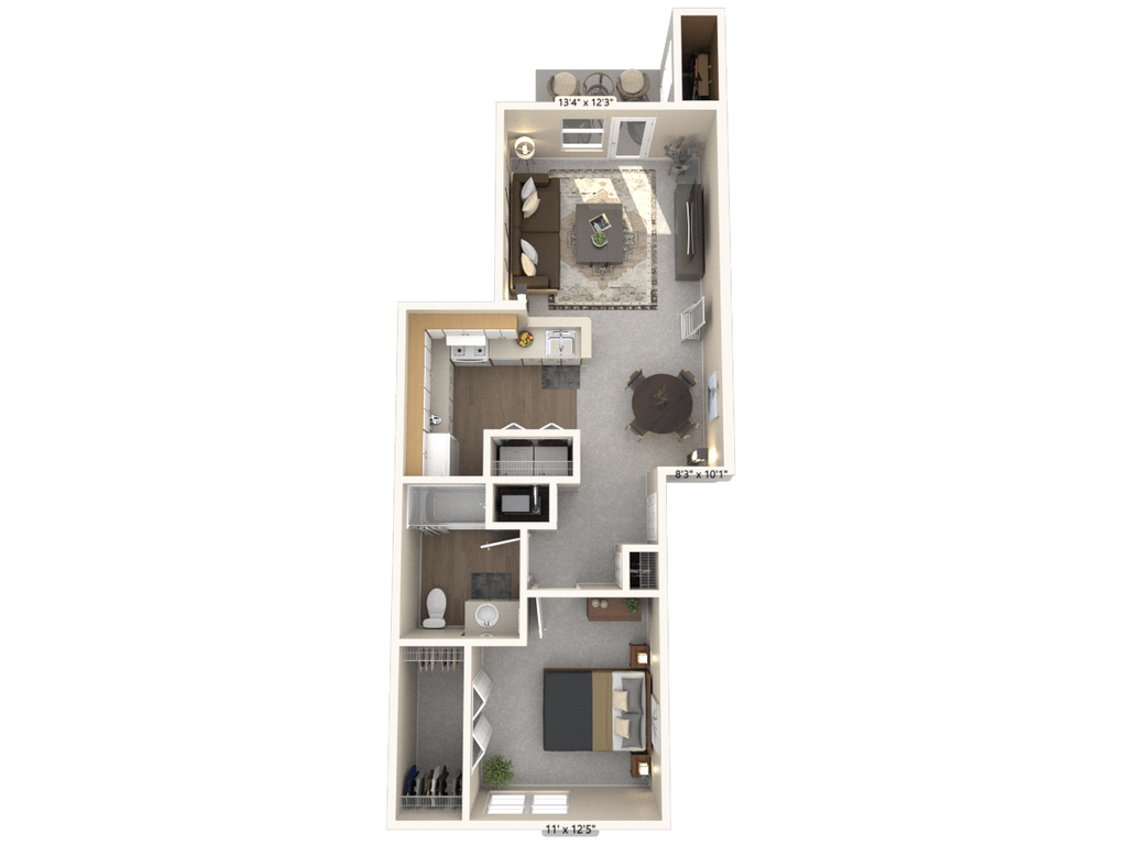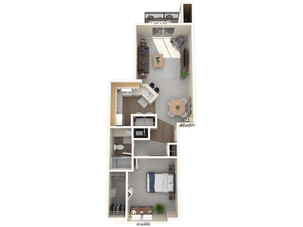 1 Bed, 1 Bath, 834-842 sq ftAvailable NowLargest 1 BedroomThis is the largest 1 Bedroom at this PropertyModel Gallery