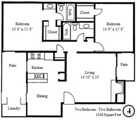 Apartment Model: #4From $1,1602 Bedroom, 2 Bath, 1048 sq ftAvailable Now![]()