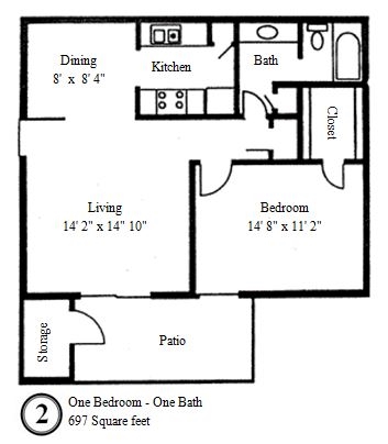 Apartment Model: #2From $8951 Bedroom, 1 Bath, 697 sq ftUnavailable![]()