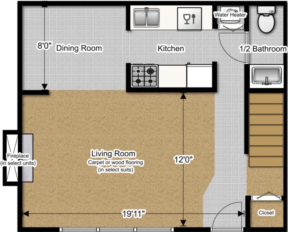 3 Beds, 1.5 Baths, 1050 sq ftModel Gallery