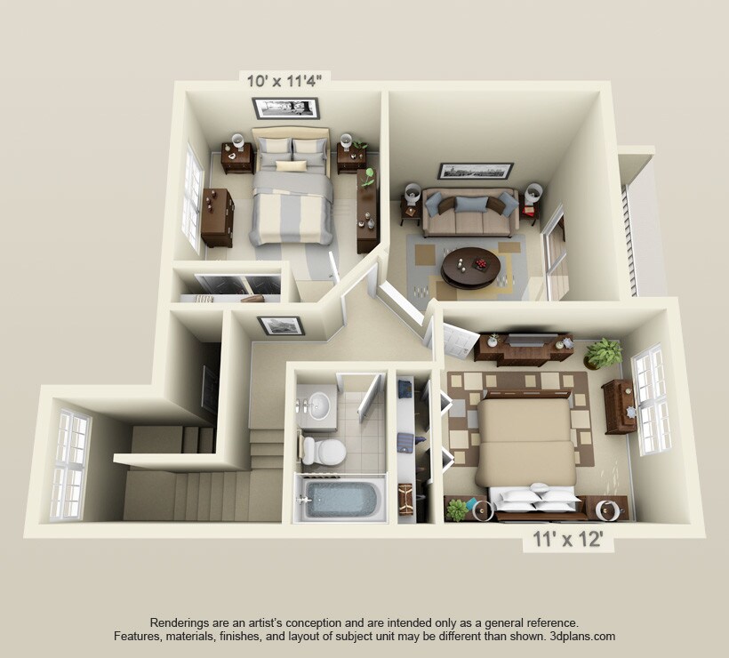 Apartment Model: 2 Bedroom UpstairsFrom $1,5202 Bedroom, 2 Bath, 1102 sq ftAvailable Now![]()