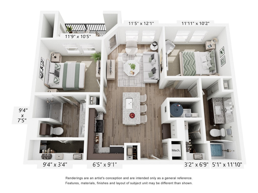 Apartment Model: B1From $1,2122 Bedroom, 2 Bath, 900 sq ftAvailable Now![]()