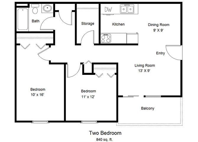 2 Beds, 1 Bath, 840 sq ftAvailable NowModel Gallery
