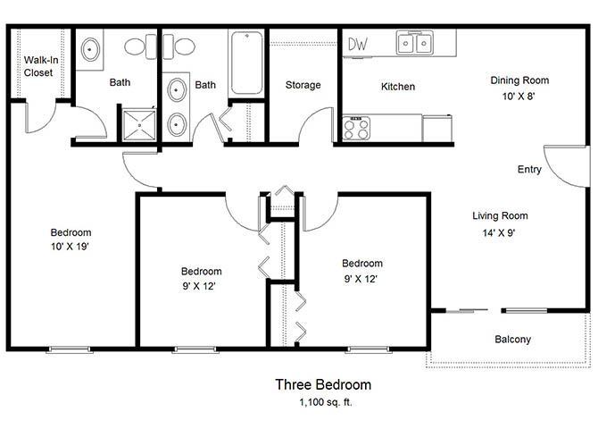 Apartment Model: Three BedroomFrom $1,2753 Bedroom, 2 Bath, 1100 sq ftAvailable NowThree Bedroom - Floorplan 1 Apartment Unit: 4020-111Apartment Model: Three Bedroom$1,2753 Bedroom, 2 Bath, 1100 sq ftAvailable Now