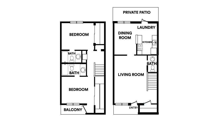 2 Beds, 2.5 Baths, 1375 sq ftAvailable NowLargest 2 BedroomThis is the largest 2 Bedroom at this PropertyModel Gallery