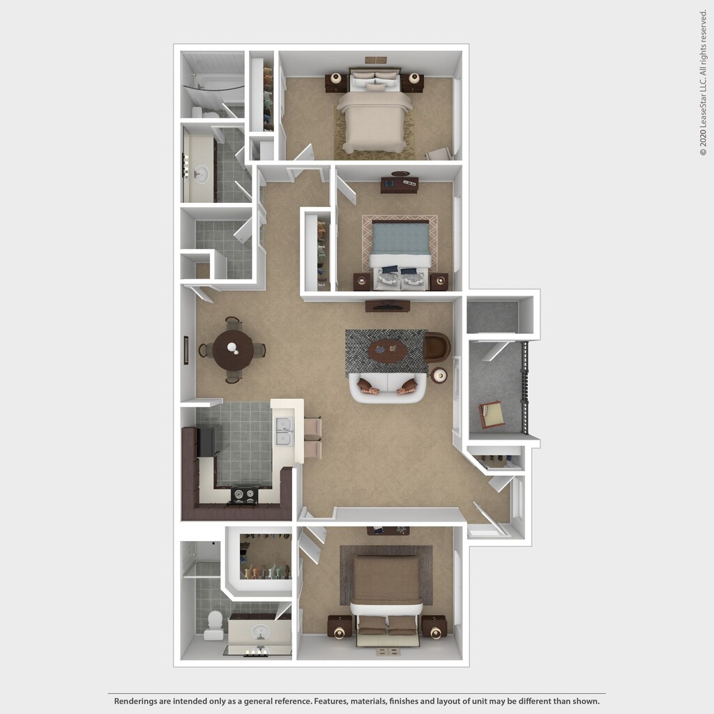 Apartment Model: EdwardianCall For Rates3 Bedroom, 2 Bath, 1280 sq ftUnavailable![]() - Edwardian - Floorplan 1