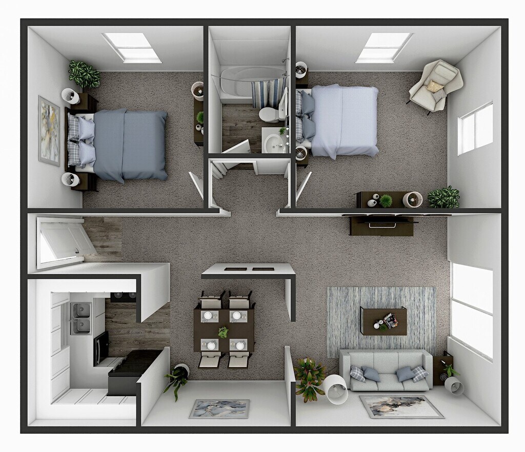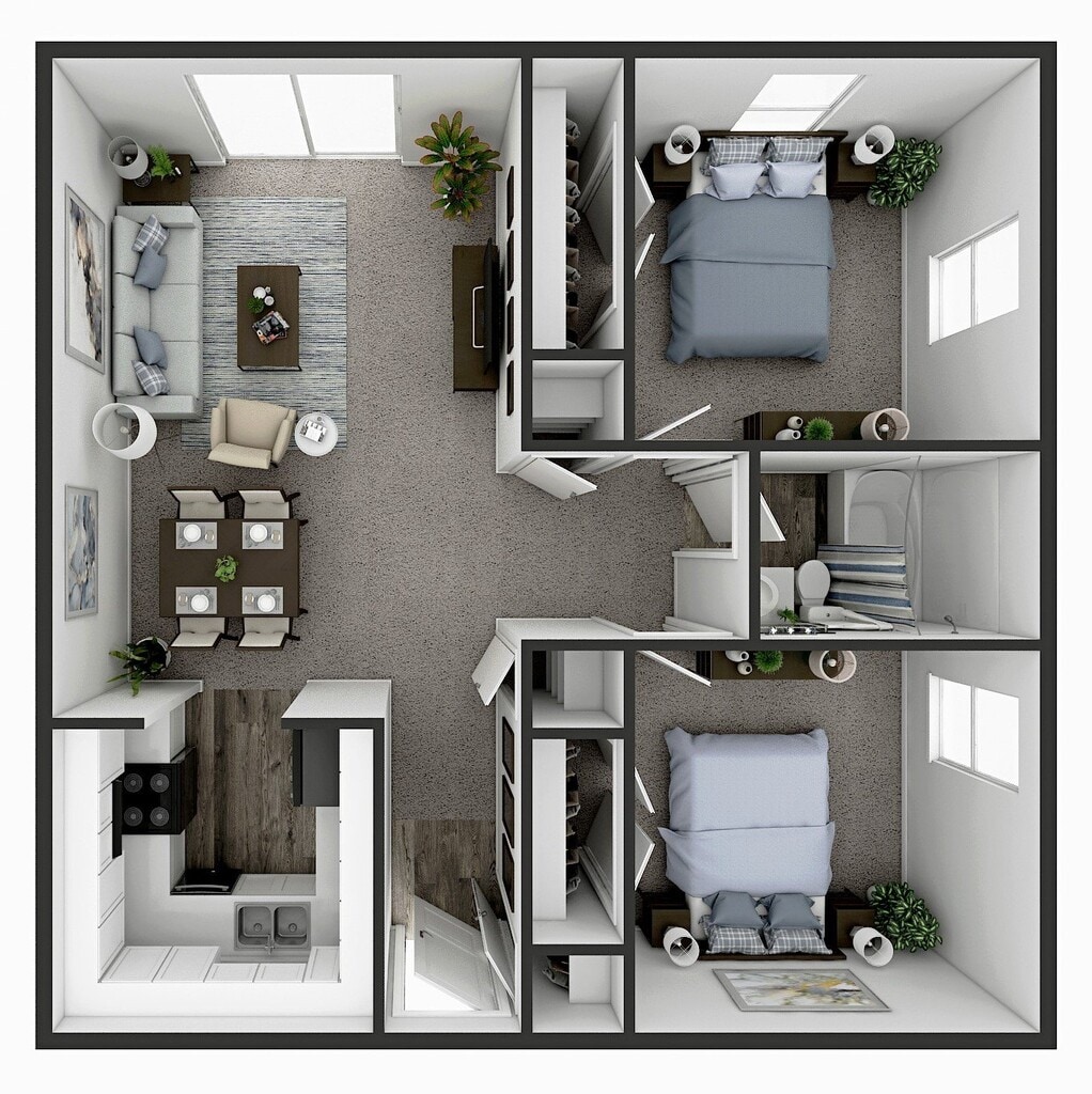 2 Beds, 1 Bath, 950 sq ftModel Gallery