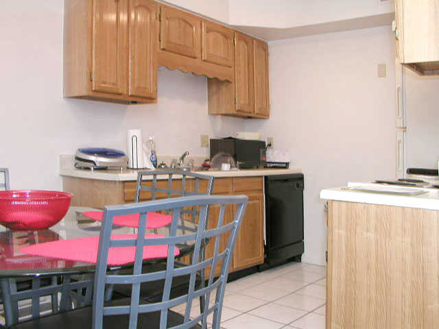 - Oak Cabinets, New Marble-look Counters, Black Appl