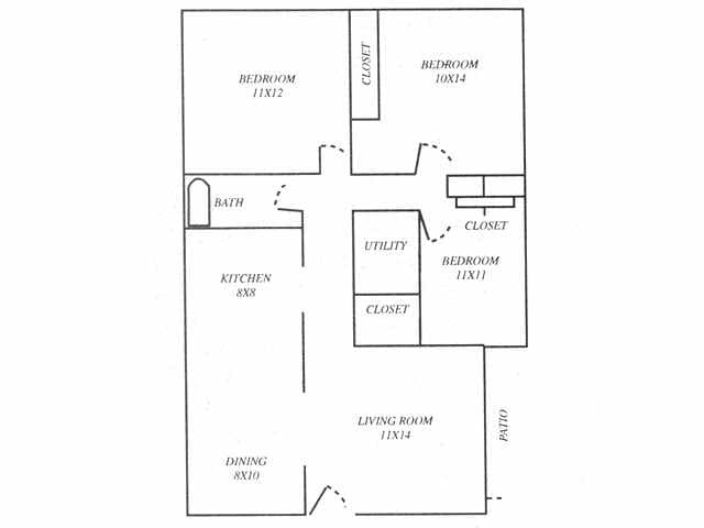 Apartment Model: 2 Bedroom 1 BathroomFrom $9432 Bedroom, 1 Bath, 1000 sq ftAvailable Now![]()