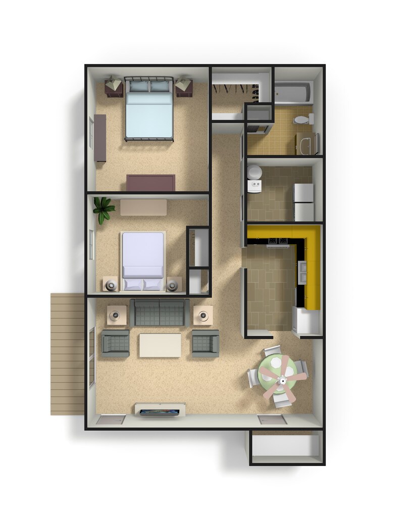 1 Bed, 1 Bath, 874 sq ftAvailable NowLargest 1 BedroomThis is the largest 1 Bedroom at this PropertyModel Gallery