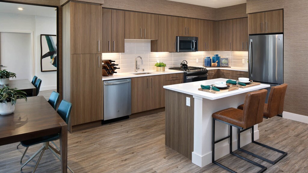 Huxley Apartments brings a modern touch to Redwood City. Our studios, one-, and two-bedroom apartment homes feature stainless steel appliances, quartz counter tops and in-home washers and dryers. Throughout the community, enjoy the rooftop deck with scenic mountain views, a fitness center and more.