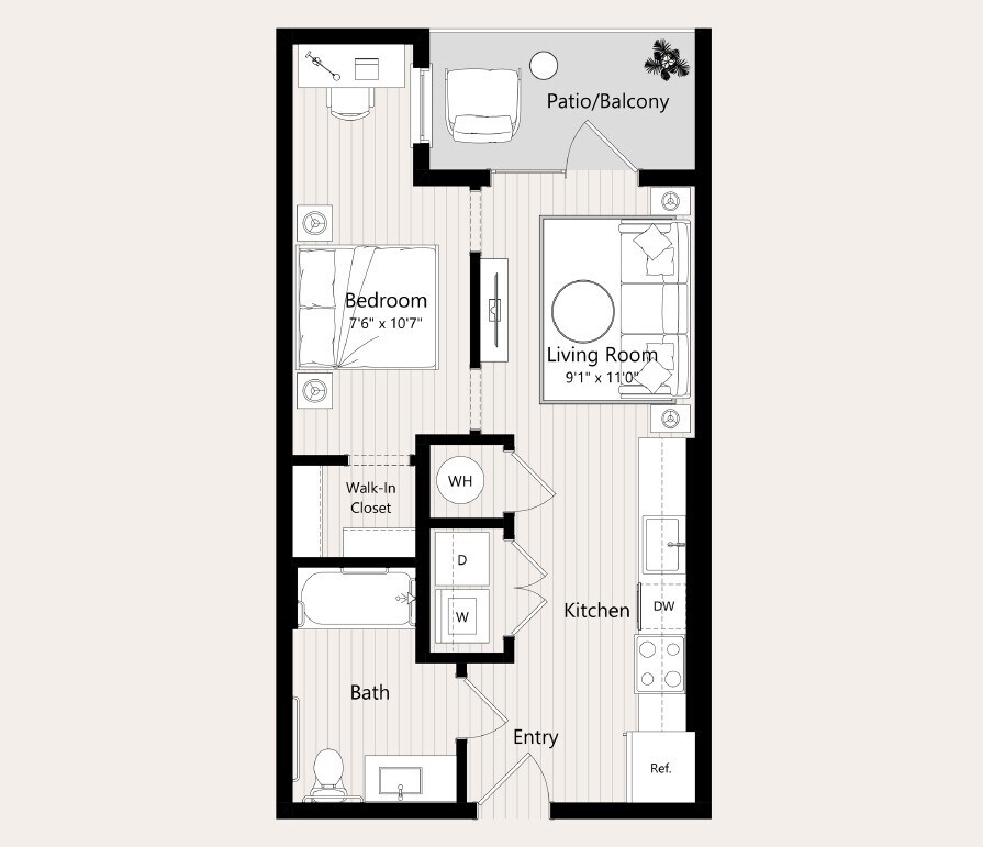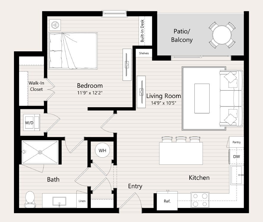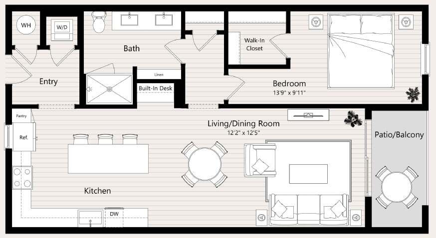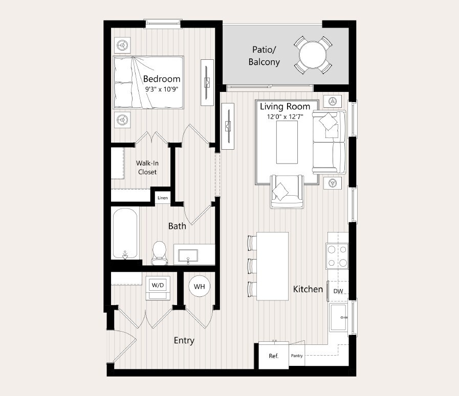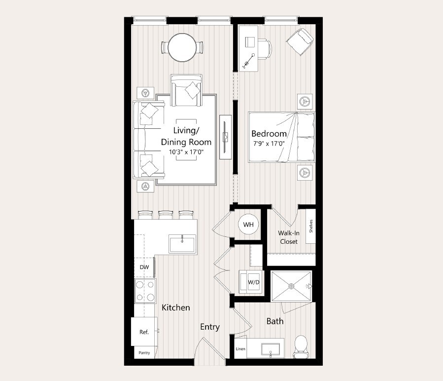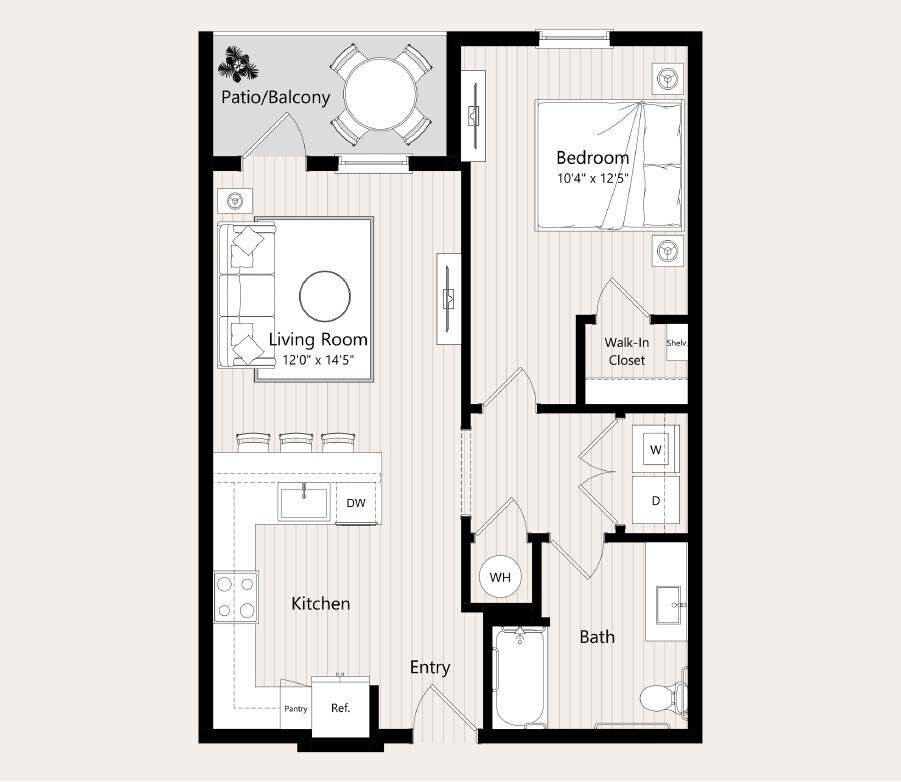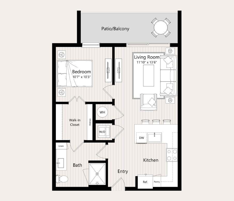 1 Bed, 1 Bath, 709 sq ftAvailable NowModel Gallery