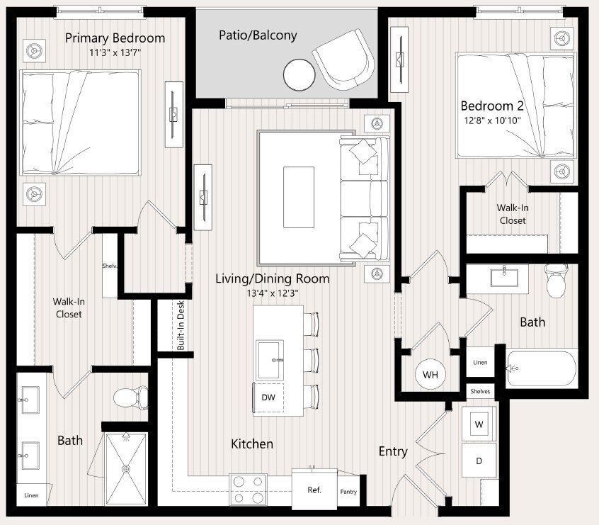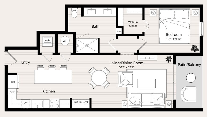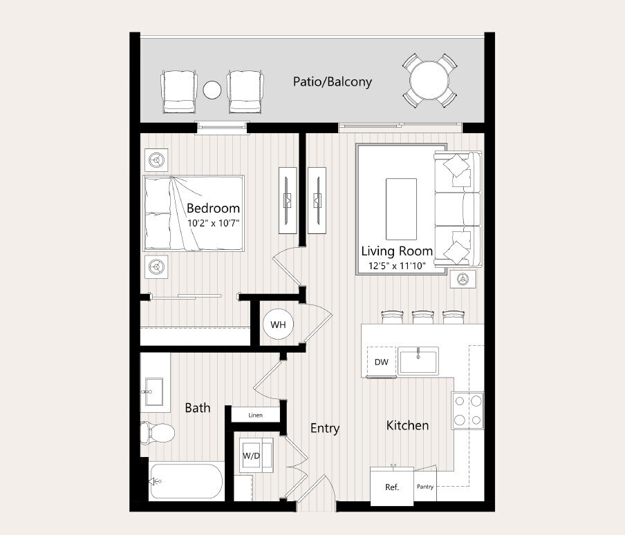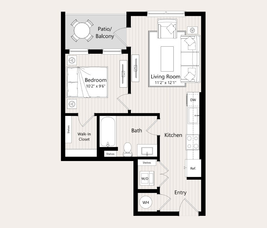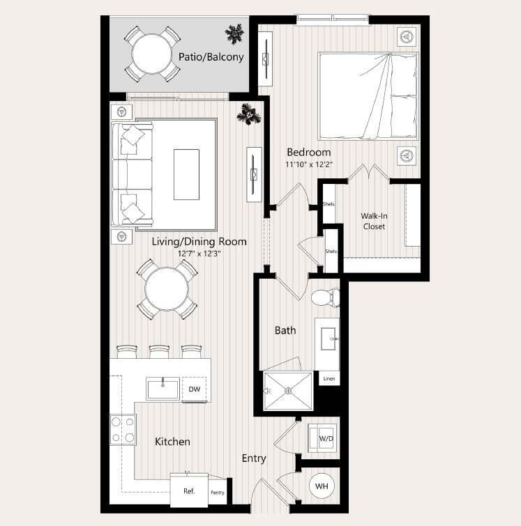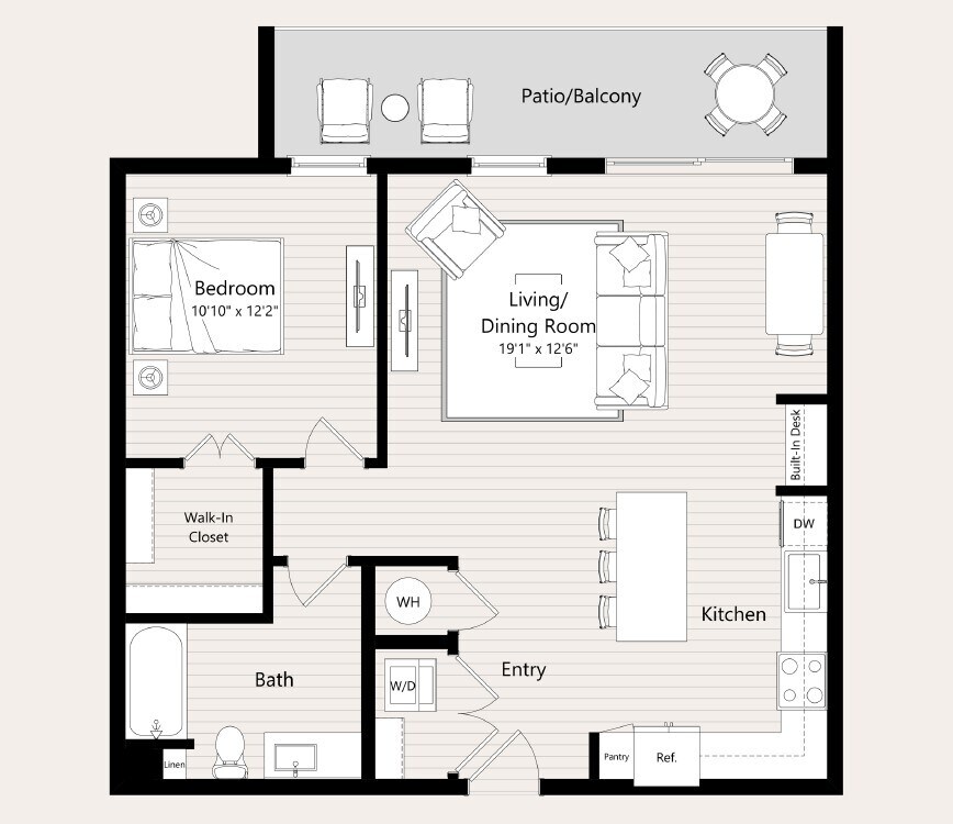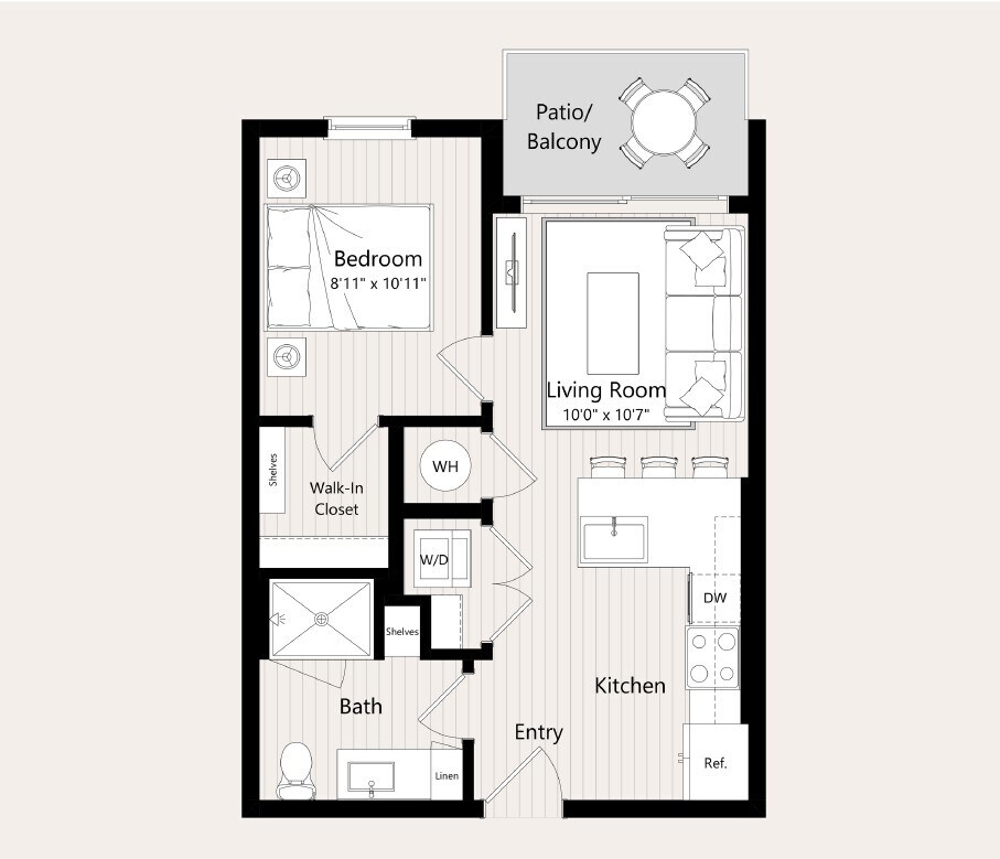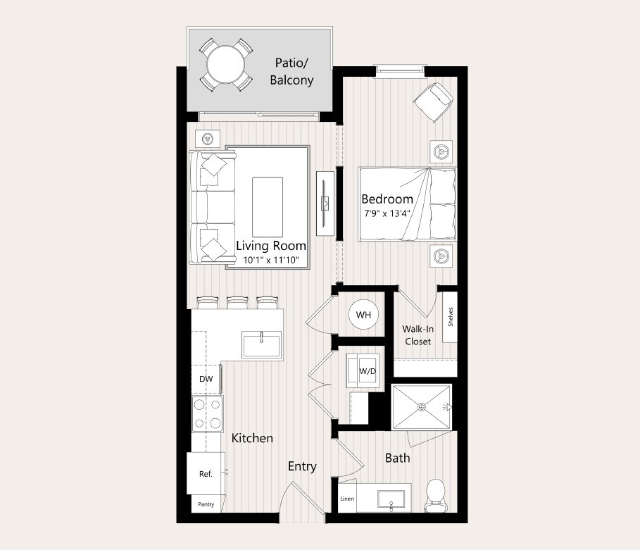 1 Bed, 1 Bath, 709 sq ftAvailable NowModel Gallery