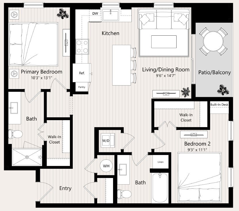A14 - Floorplan 1 Apartment Unit: 207Apartment Model: A14$2,0211 Bedroom, 1 Bath, 674 sq ftAvailable NowApartment Unit: 208Apartment Model: A14$2,0211 Bedroom, 1 Bath, 674 sq ftAvailable January 13, 2026Floorplan A15
