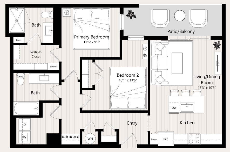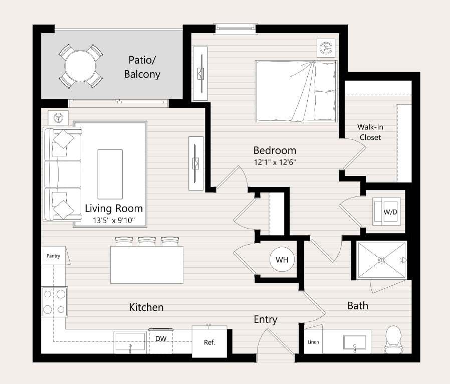 1 Bed, 1 Bath, 674 sq ftAvailable NowModel Gallery