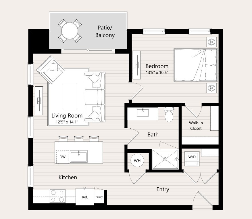 Apartment Model: A14$2,0211 Bedroom, 1 Bath, 674 sq ftAvailable Now![]()